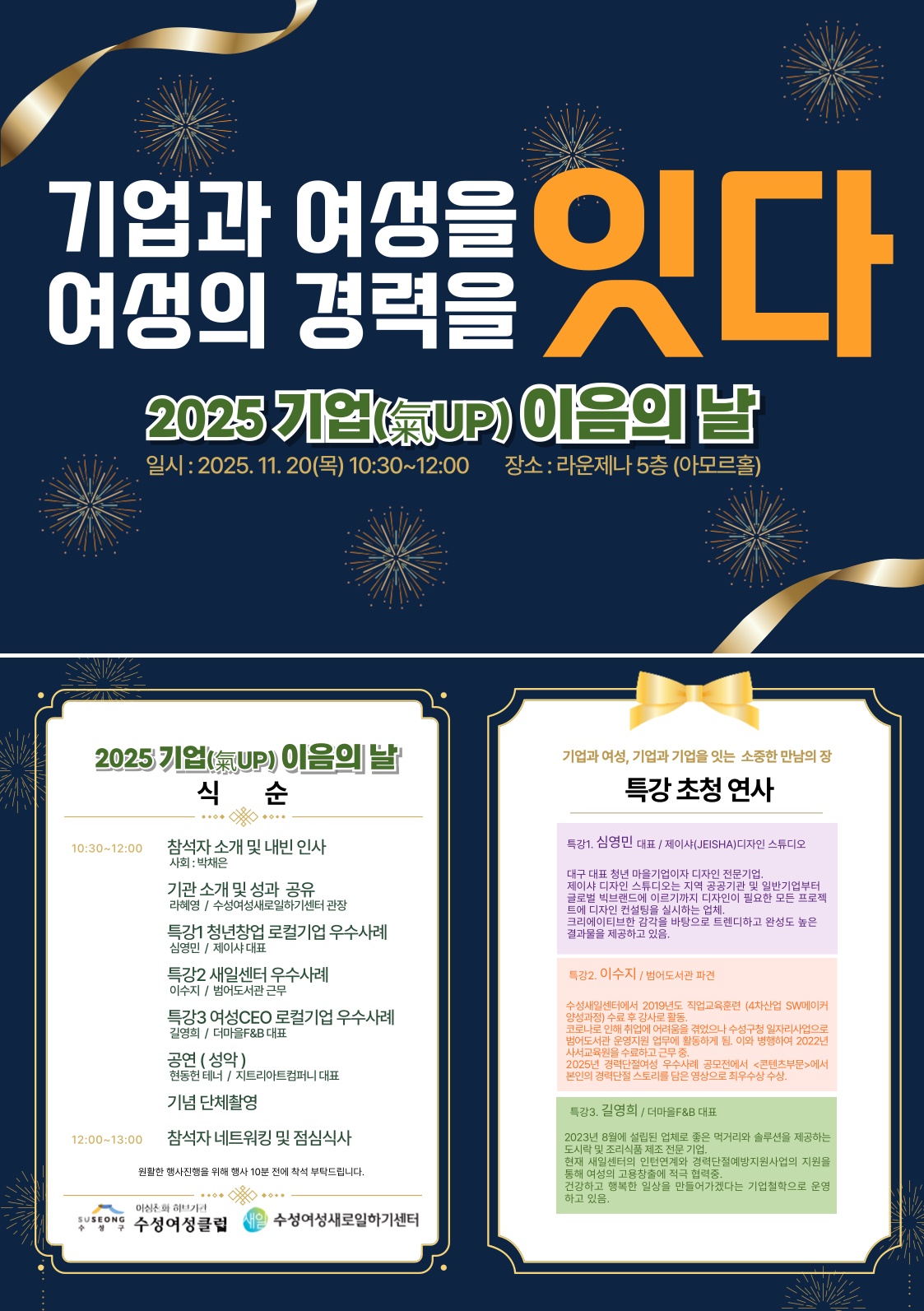 #기업이음의날 #여성일자리 #수성여성새일센터 #수성여성클럽 #여성취업 #여성창업 #로컬기업 #기업과여성을잇다 #경력을잇다 #대구광역시 #수성구청