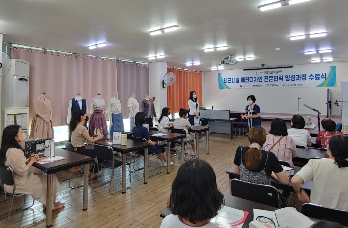 2022직업훈련 테크니컬 패션디자인전문인력 양성과정 수료식이 학원에서 진행되었습니다.