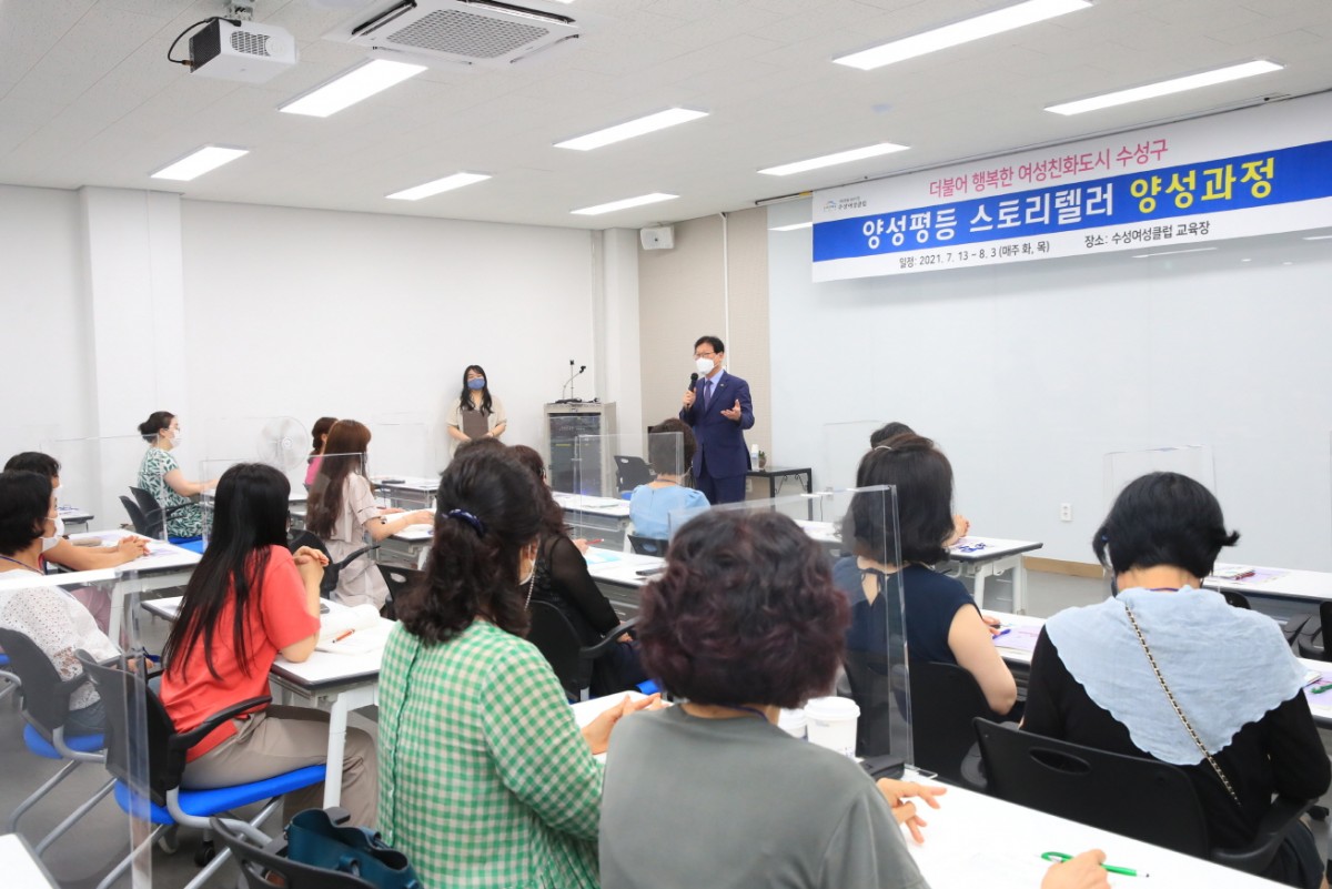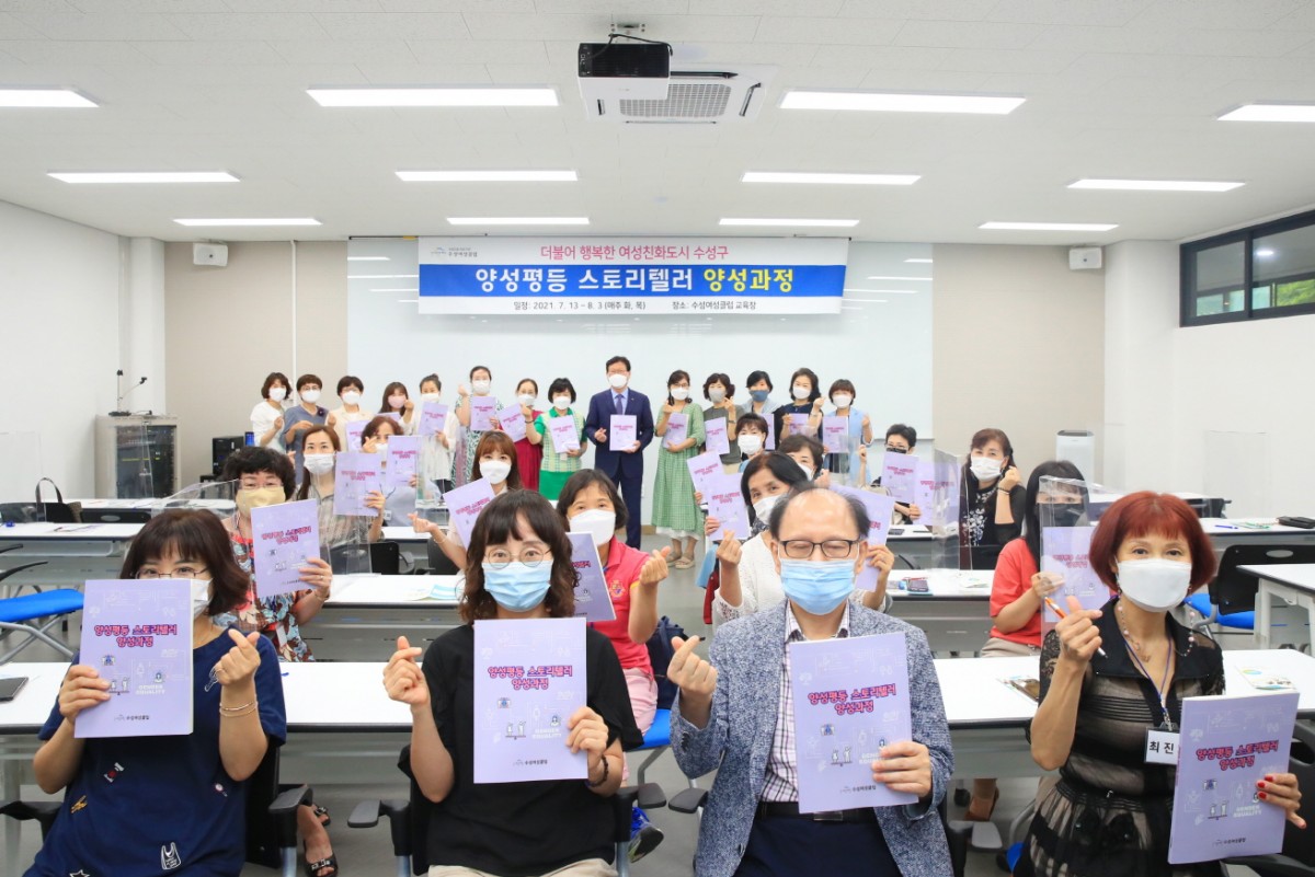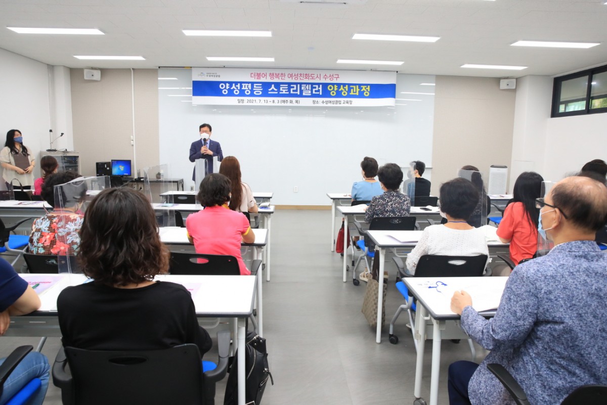 2021 여성친화도시추진역량강화사업의 "양성평등 스토리텔러 양성과정" 개강식이 수성여성클럽 교육장에서 진행되었습니다.