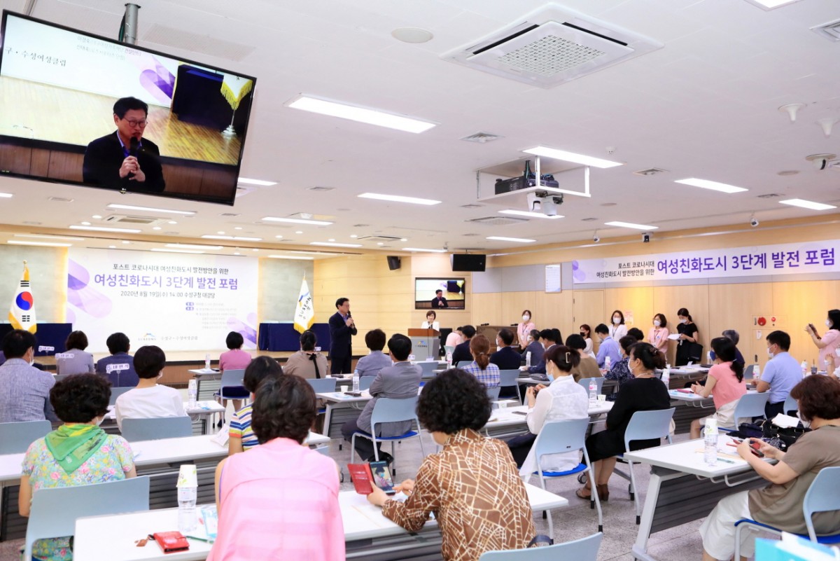 대구 수성구(구청장 김대권)가 주최하고 수성여성클럽이 주관한 ’여성친화도시 3단계 발전 포럼(포스트 코로나시대 여성친화도시 발전방안)‘이 19일 수성구청 대강당에서 개최되었습니다.